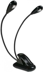 Notová lampička se dvěma LED na baterie. Vysoká svítivost, dlouhá životnost baterií. Černé provedení.